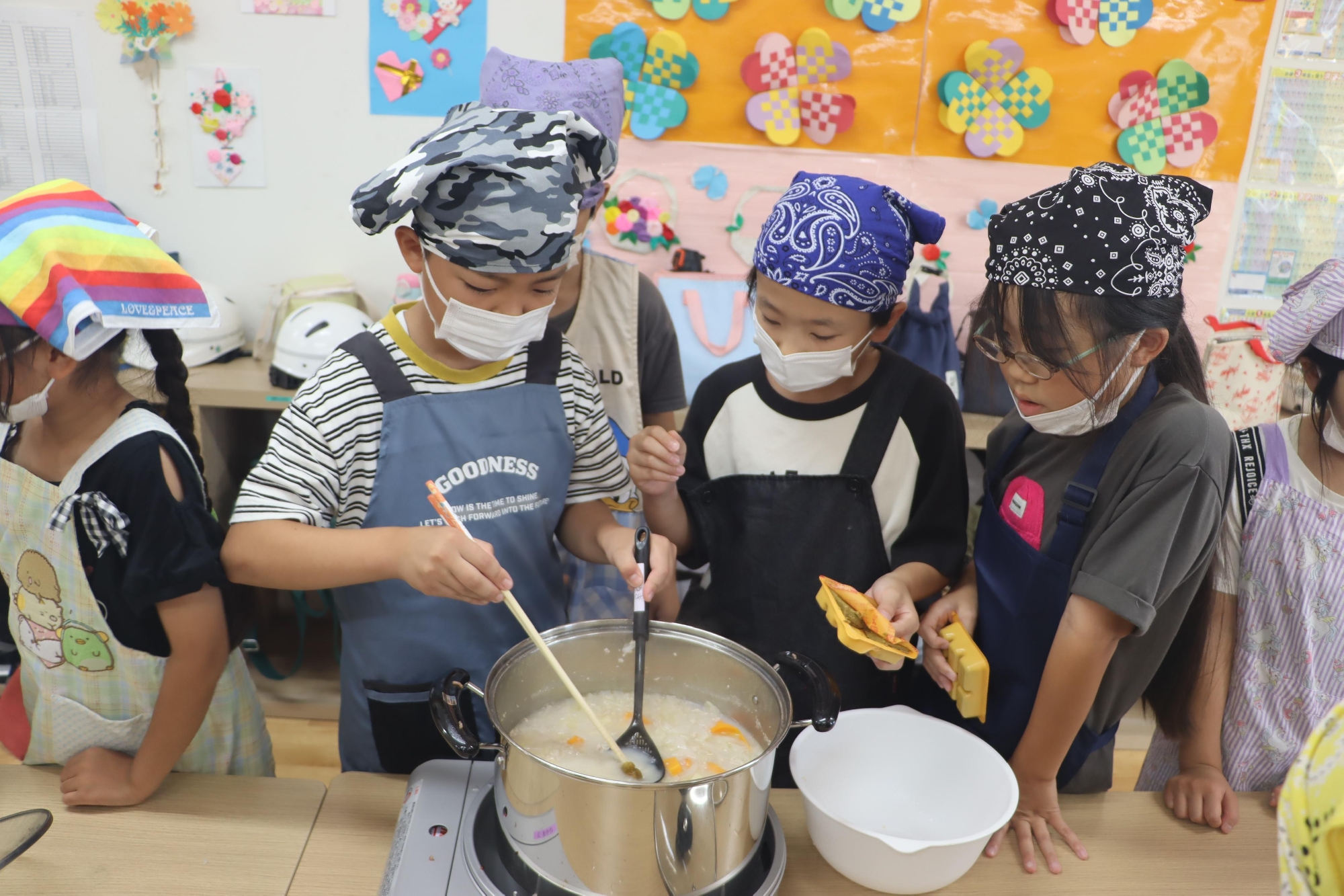 涼しい室内での調理で、子ども達は楽しく真剣に行っていました。